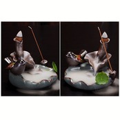 この香炉の最大の魅力は、専用の逆流香(コーン香)を使用することで、煙が重力に逆らうかのように滝状に下へ流れ落ちる、神秘的な現象を創り出す点です。その煙が、穏やかな表情の仏像(如来/菩薩)の周りを漂い、まるで悟りの境地を具現化しているかのような、幻想的な視覚効果を生み出します。