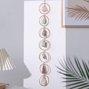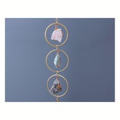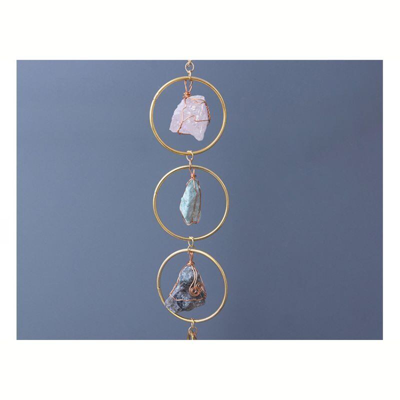 優しい輝きを放つ天然石を、金色のフレームに一つひとつ丁寧に組み合わせた「天然石サンキャッチャー」。光を受けてゆらめく姿はまるで自然の欠片を集めたアートのようで、空間に穏やかなエネルギーを広げてくれます。太陽の光があたると石の表面がきらりと輝き、まるで小さな虹が生まれるような美しい光の演出を楽しめます。