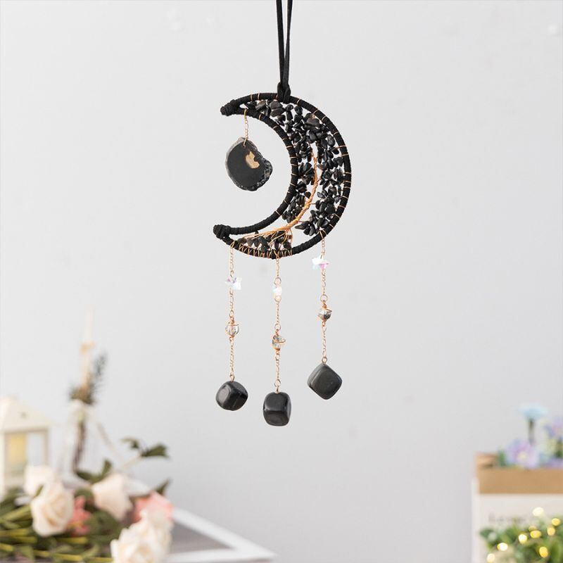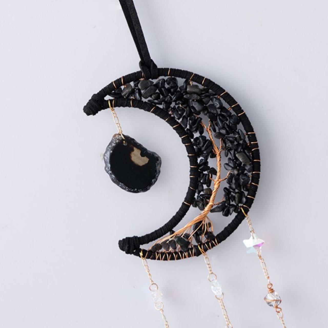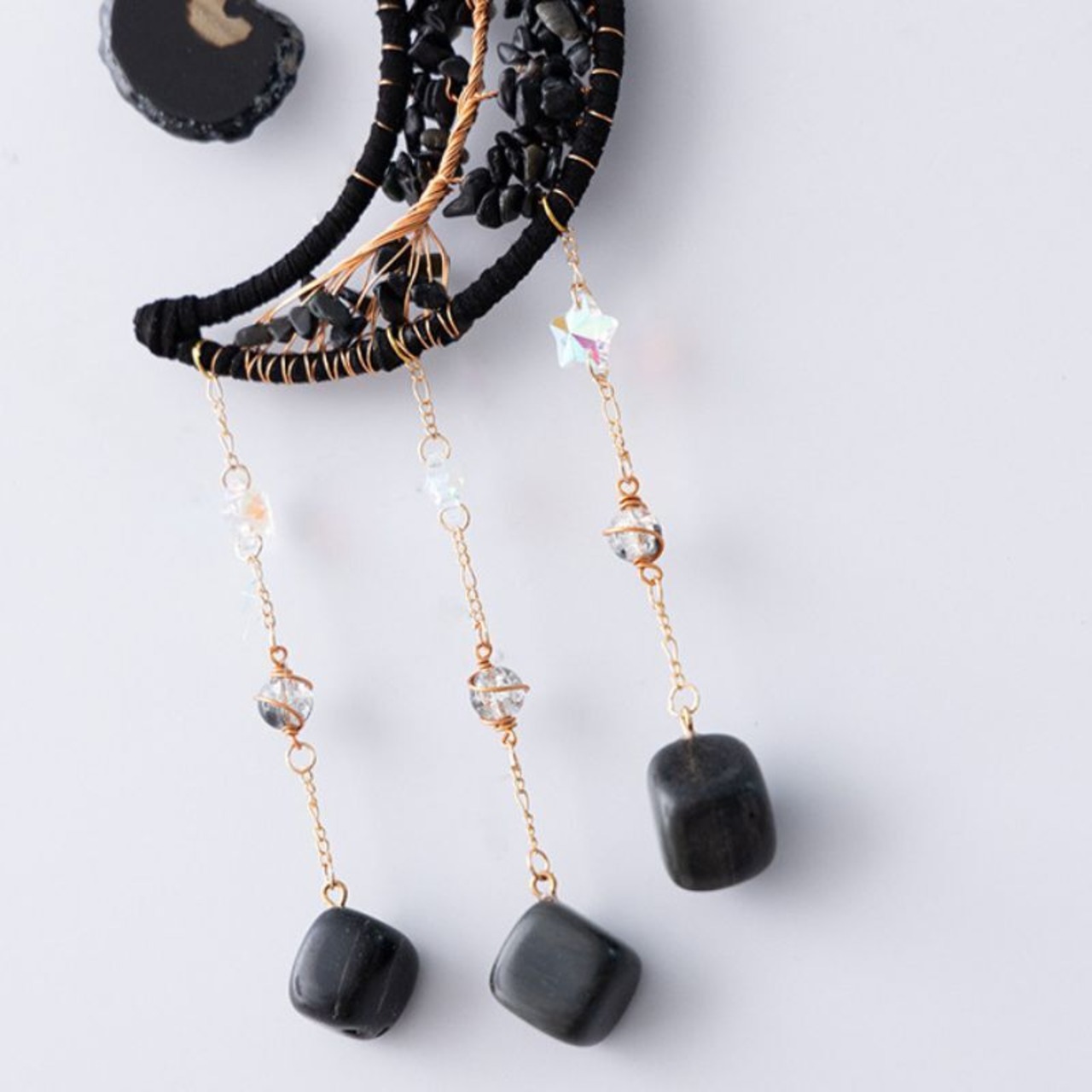 ドリームキャッチャー 月 ムーン 黒石 ネイティブインディアン 吊り下げ インテリア 飾り クリスタル ブラック 幸運 風水 開運 パワーストーン おしゃれ 室内装飾 寝室 玄関 オフィス ギフト プレゼント お守り ヒーリング | 幸せの置場