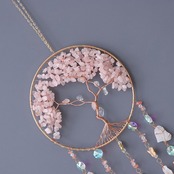 優しいピンクがふんわりと心を包み込む、ローズクォーツの生命の樹サンキャッチャー。光を受けてきらめく天然石が、空間に柔らかな愛のエネルギーを広げ、恋愛運・家庭運・美容運を高めてくれる風水インテリアです。