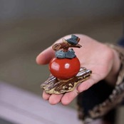 こちらの置物は、茶器で有名な宜興紫砂の上質な陶土を使用し、熟練の職人がひとつひとつ丁寧に手作りした逸品。