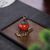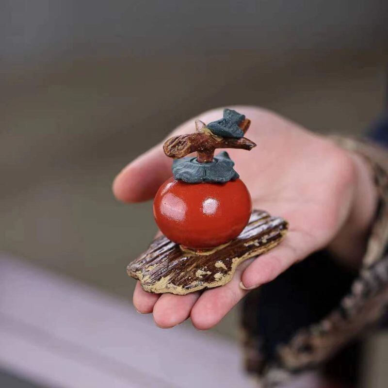 柿 宜興紫砂 置物 縁起物 風水 開運 柿如意 茶寵 茶道具 茶台 飾り 柿モチーフ インテリア 商売繁盛 家庭円満 幸運招来 厄除け 陶器 かわいい ミニサイズ 手のひらサイズ 装飾品 飾り デスク 小物 雑貨 | 幸せの置場