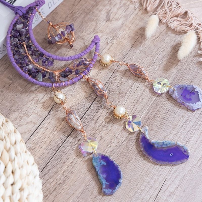 このパープルが美しいアメジストとムーンモチーフのウォールハンギングは、単なる装飾品を超え、風水が重んじる「精神的な安定」と「知性」のエネルギーを優しくお部屋にもたらしてくれるかもしれません。