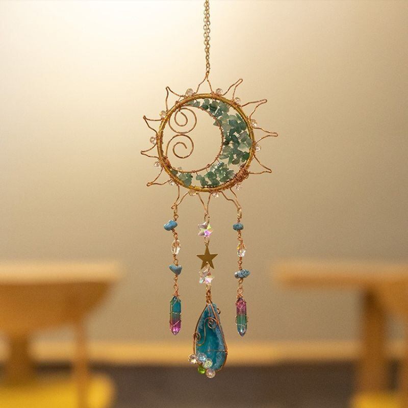 サンキャッチャー 天然石 ムーン 太陽 ウォールハンギング 三日月 クリスタル 風水 開運 浄化 癒やし お守り 窓飾り 吊り下げ 玄関 インテリア 雑貨 パワーストーン おしゃれ ギフト プレゼント 厄除け 魔除け | 幸せの置場