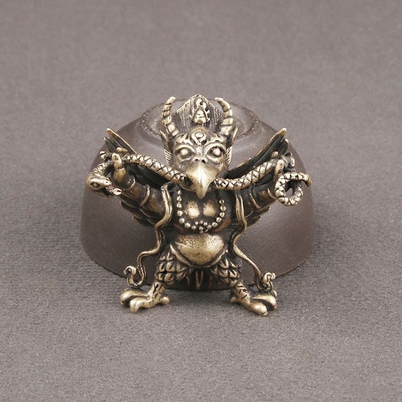 金翅大鵬鳥 ガルーダ 鳥 置物 オブジェ 風水 小物 黄銅 ブラス アンティーク 護法 神獣 密教 チベット 仏教 モチーフ 魔除け 厄除け 守護 お守り 開運 文玩 飾り デスク インテリア 縁起物 ギフト | 幸せの置場