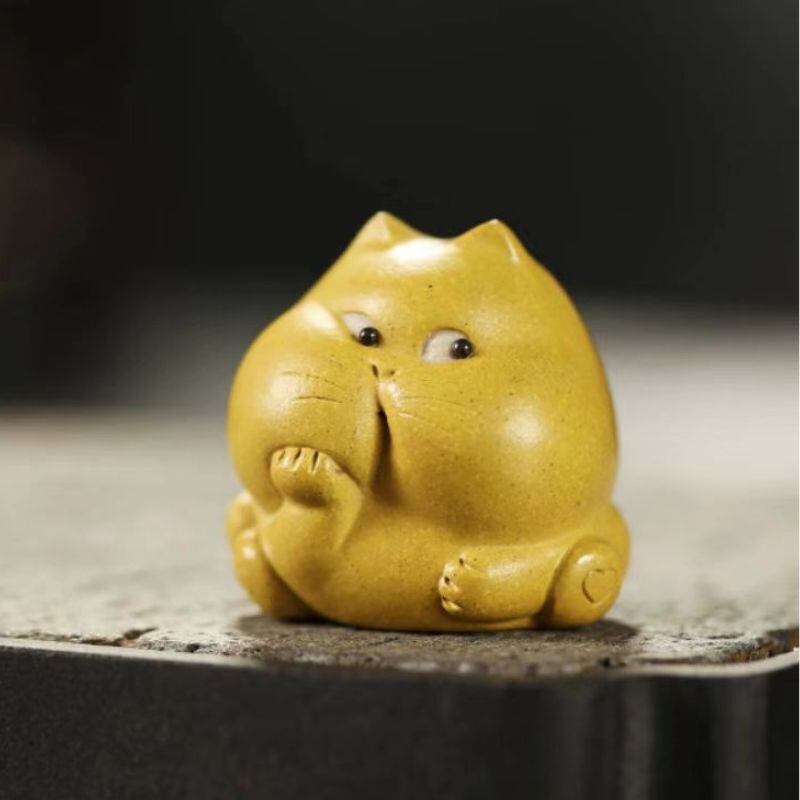 猫 ねこ 置物 オブジェ 卓上 茶寵 ほおづえ猫 茶ペット 茶道 ミニ インテリア ミニチュア 開運 風水 金運 癒し かわいい 猫置物 茶台 飾り 禅雑貨 アニマルオブジェ 功夫茶 茶器小物 デスク置物 リラックスグッズ 縁起物 ギフト プレゼント
