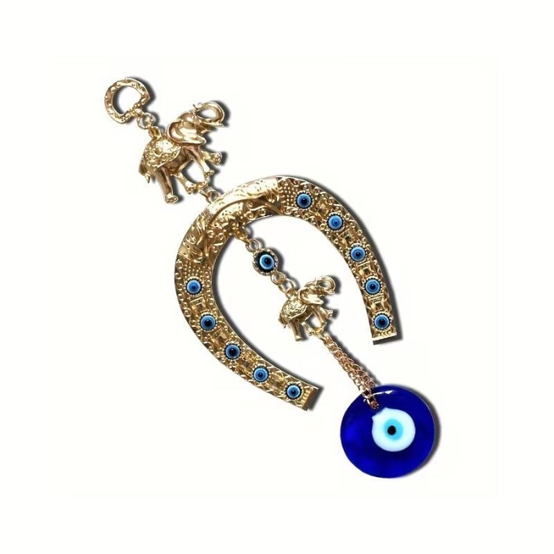 馬蹄 チャーム 風水 開運 馬 象 ゾウ モチーフ キーホルダー 邪視避け ナザールボンジュウ トルコ 幸運 ゴールド 金 お守りアクセサリー 金運アップ 厄除け 魔除け 良縁祈願 仕事運 財運 招福 バッグチャーム フック付き インテリア 小物 プレゼント ギフト 開運雑貨