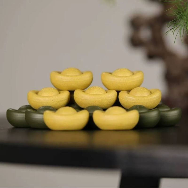 元宝は古代中国で財を象徴する形として用いられてきたもので、豊かさや蓄財のイメージを持つ縁起物として広く親しまれています。