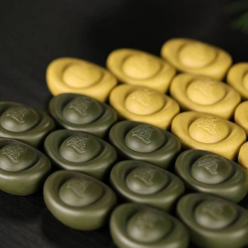 元宝 置物 風水 財運アップ 金運祈願 開運グッズ 小型 オブジェ ミニチュア 古銭モチーフ イエロー グリーン 縁起物 商売繁盛 招財 インテリア 卓上 玄関 リビング デスク 開運インテリア 厄除け ギフト プレゼント 運気アップ 開運雑貨 小物