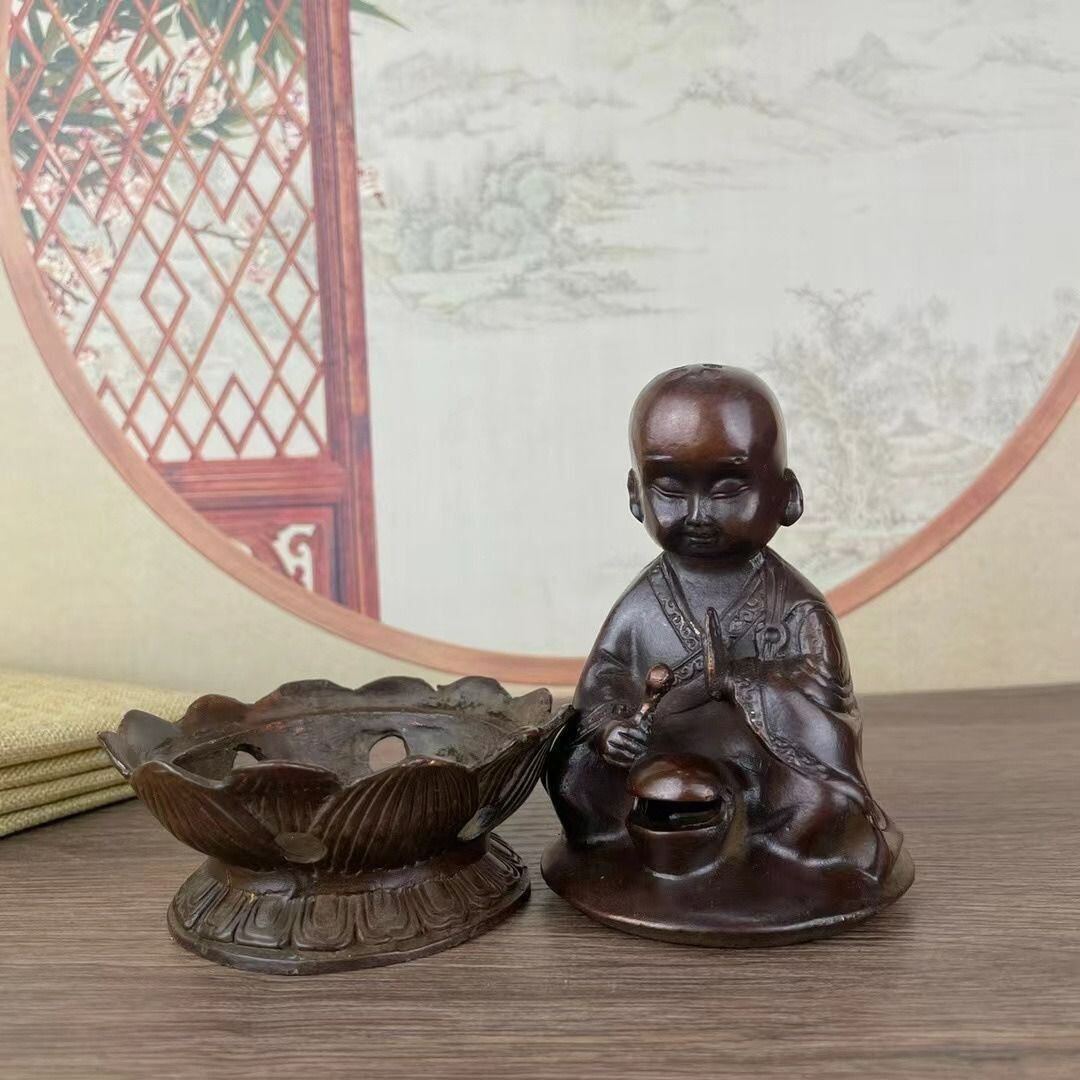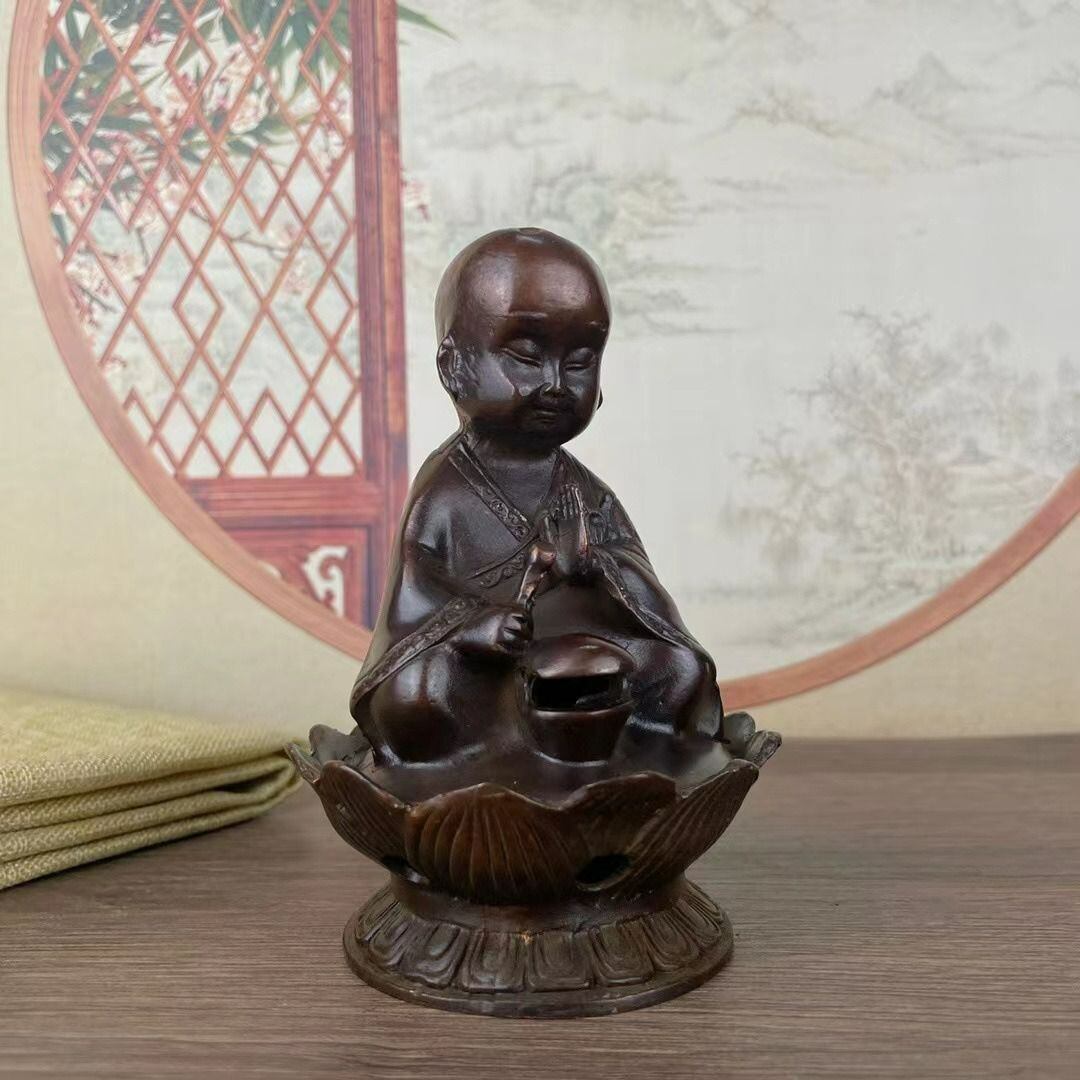 穏やかな心を育み、心身のバランスを整えるためのアイテムとして、古来から信仰されてきた仏教の僧侶像をモチーフにした香炉です。僧侶は、精神的な修行や瞑想を通じて、内面の平穏を保ち、周囲の人々にもその平和なエネルギーを伝える存在とされています。その姿勢や表情には、深い瞑想と自己の内なる力に集中する重要性が表現されています。