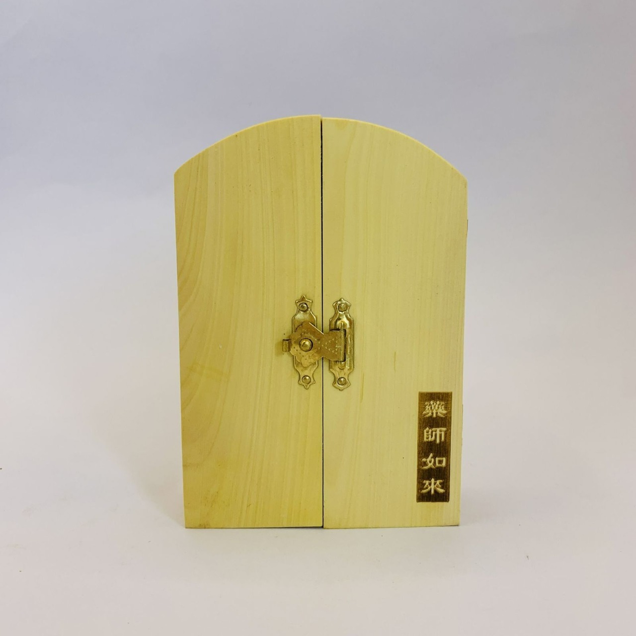 精緻な木彫りで表現された観音菩薩像で、その細部まで丁寧に彫られた姿勢は、見る者に深い感動を与えます。木彫りの温かみと静かな力強さが感じられ、まるで観音菩薩がそこにいるかのような存在感を放っています。また、扉付きのデザインは、神聖な空間を作り出し、観音菩薩の慈悲と智慧を閉じ込める象徴的な意味を持っています。扉を開けることで、さらに深い慈悲のエネルギーが広がるように感じられるでしょう。