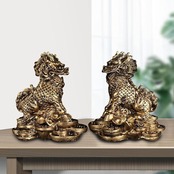 また、樹脂製でありながら精巧なデザインが特徴で、インテリアとしても優れた存在感を発揮します。神秘的でありながらエレガントなこの麒麟像は、風水に興味がある方はもちろん、洗練された空間を演出したい方にもおすすめの逸品です。