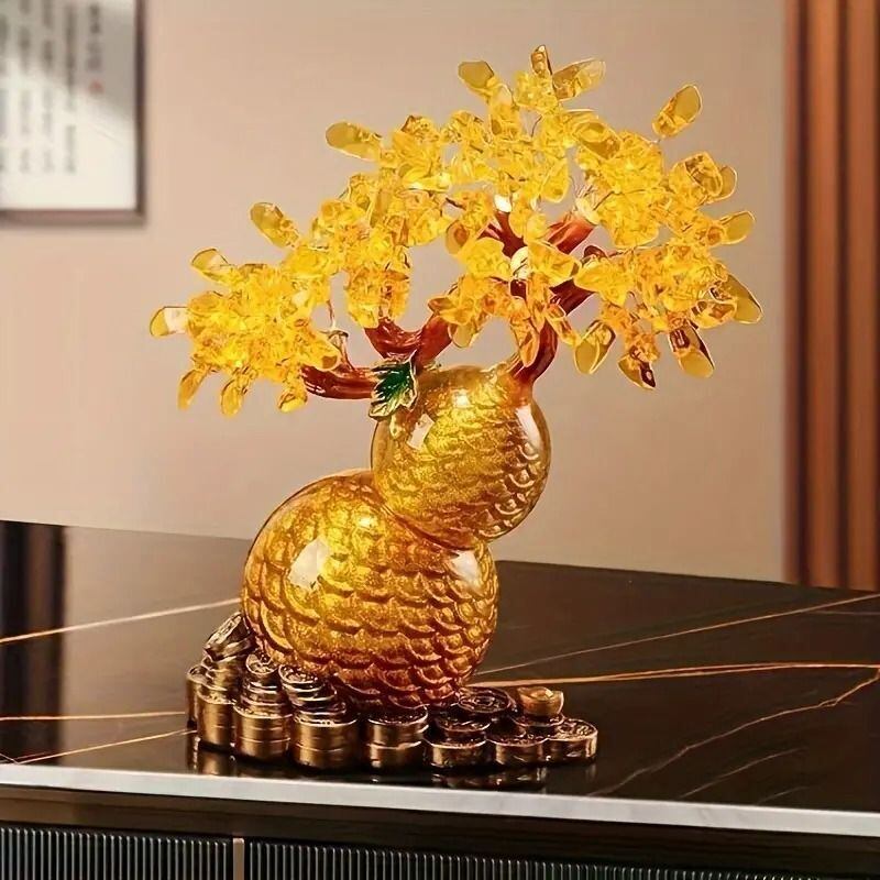 瓢箪(ひょうたん)は、古来より「福を招く縁起物」として尊ばれてきたみたいです。その形は天と地をつなぐ神秘的なものとされ、幸運や繁栄をもたらす象徴として広く信仰されているようです。この商品は、そんな瓢箪にクリスタルで作られた「金のなる木」を組み合わせた、きらめきと縁起の良さが詰まったオブジェです。