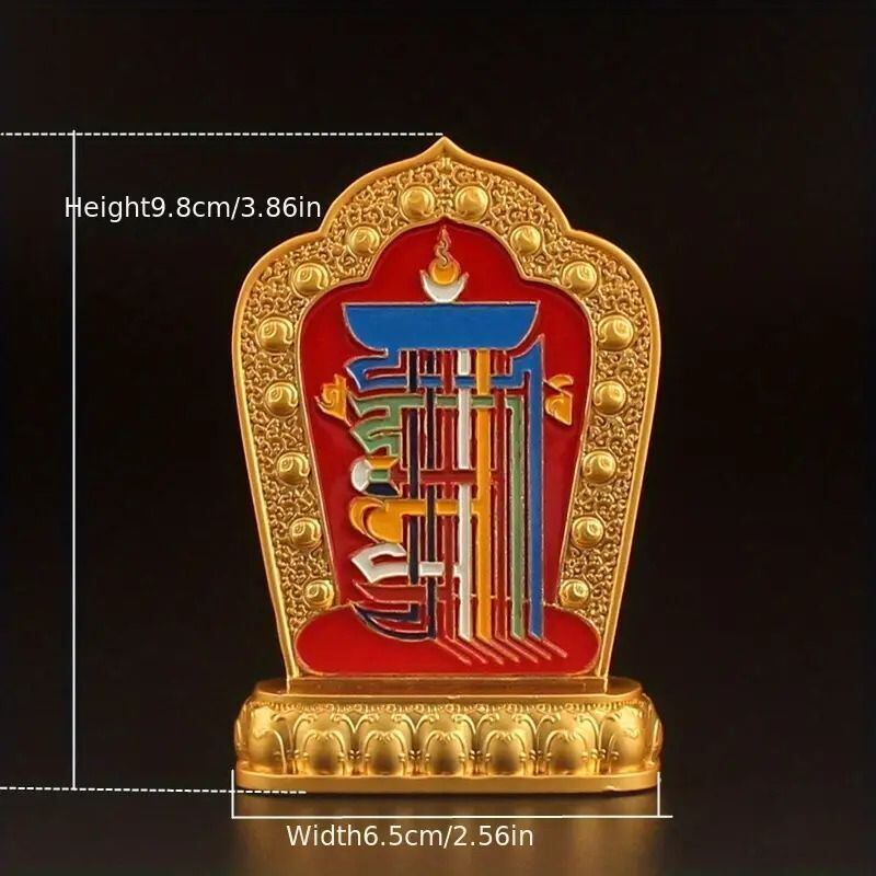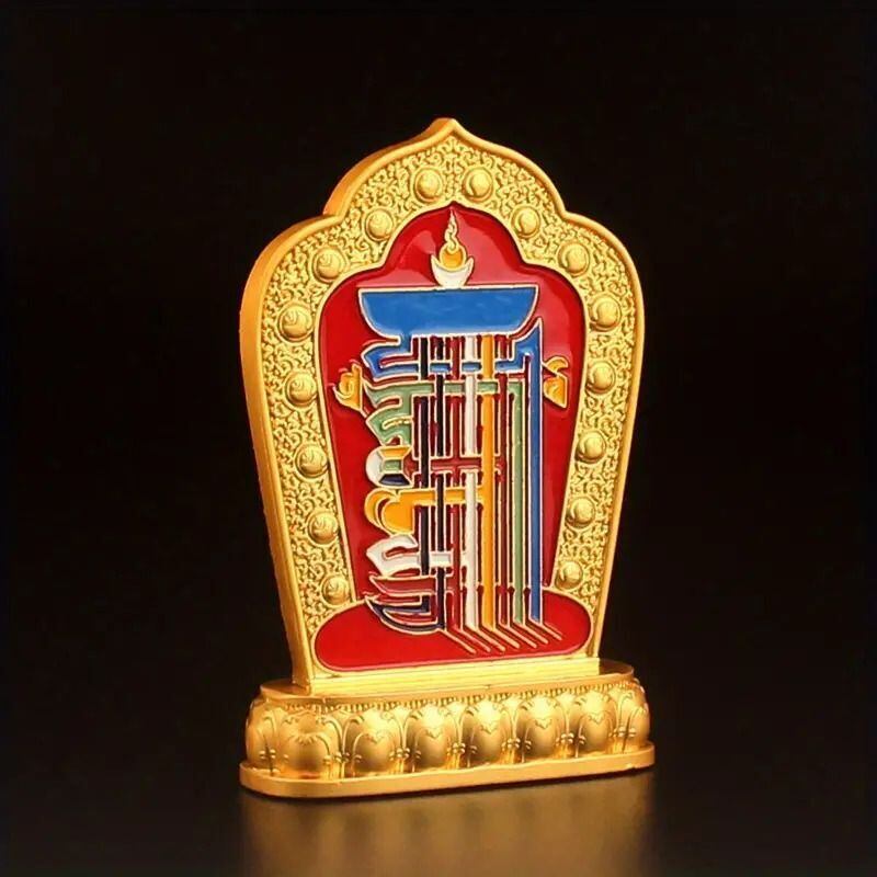 この置物は、チベット仏教の伝統を感じさせる美しいアイテムです。ゴールドを基調とし、赤と青の鮮やかな模様が施されたこの置物は、古来より「幸運」と「守護」の象徴として大切にされてきたようです。チベットでは、このようなお守りが厄除けや家族の安全を願うために使われ、心の平穏と幸福をもたらすと信じられています。