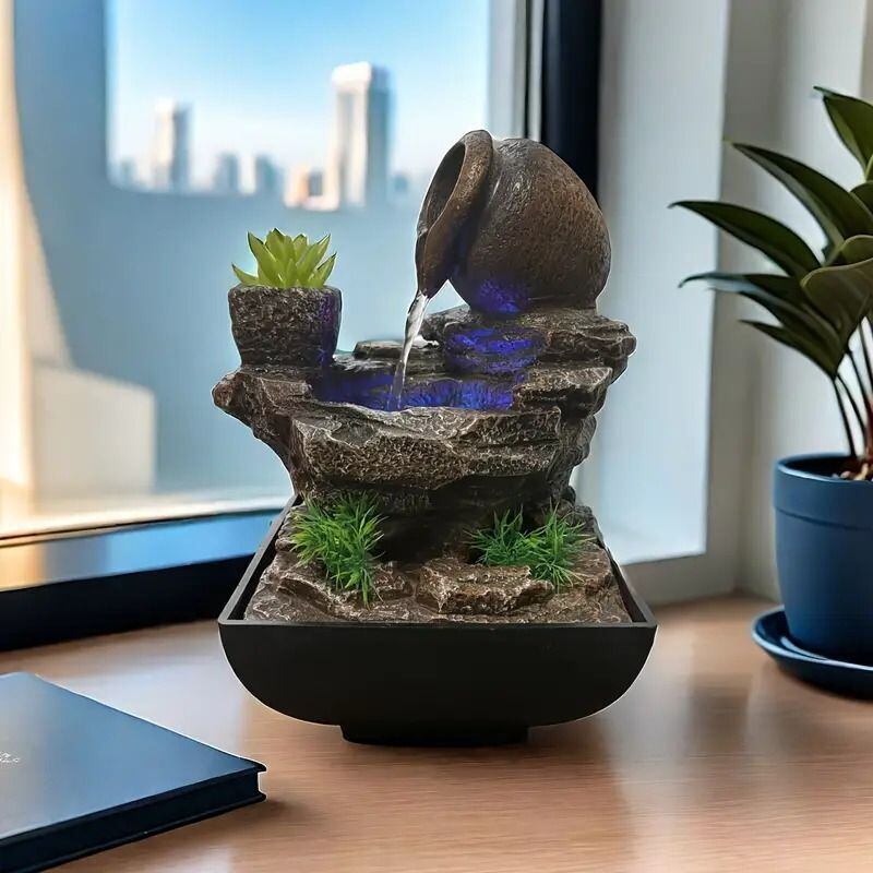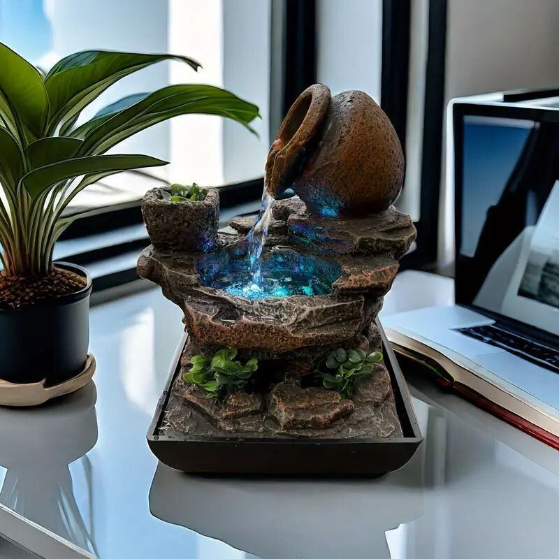 卓上噴水は、古くから風水やスピリチュアルの世界で、運気を呼び込み、心身を浄化するとして大切にされているようです。この「壺から水が出る」デザインは、豊かさや繁栄を象徴し、水が流れ続けることで、良いエネルギーが絶え間なく循環すると信じられています。