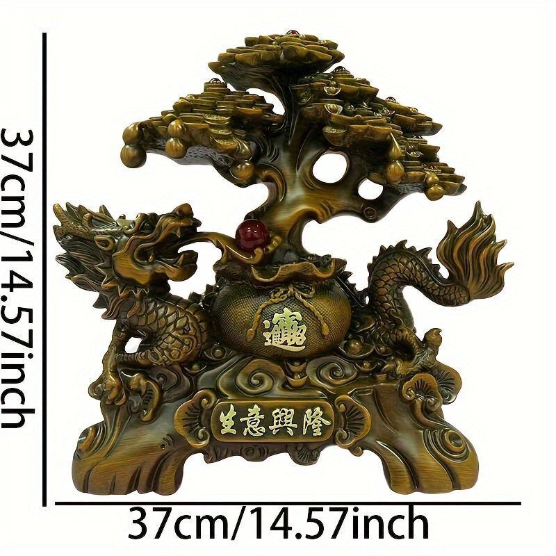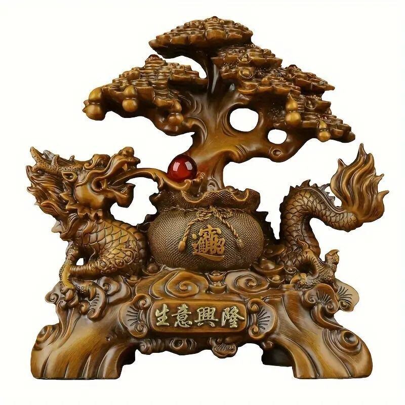 また、このオブジェには「金のなる木」という象徴も加わり、成長と繁栄を意味します。金のなる木は、実り豊かな未来を象徴し、金運を高めるとされてきました。その木の下で龍が力強く守っている様子は、周囲にポジティブなエネルギーをもたらし、幸運を引き寄せると信じられています。