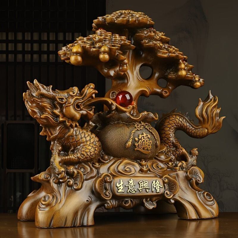また、このオブジェには「金のなる木」という象徴も加わり、成長と繁栄を意味します。金のなる木は、実り豊かな未来を象徴し、金運を高めるとされてきました。その木の下で龍が力強く守っている様子は、周囲にポジティブなエネルギーをもたらし、幸運を引き寄せると信じられています。
