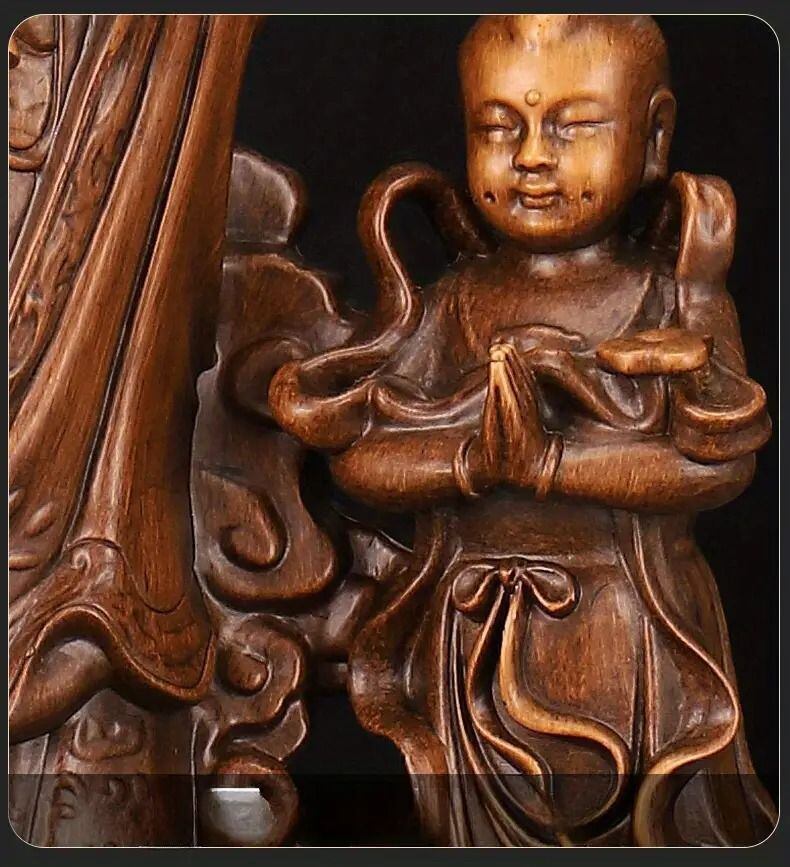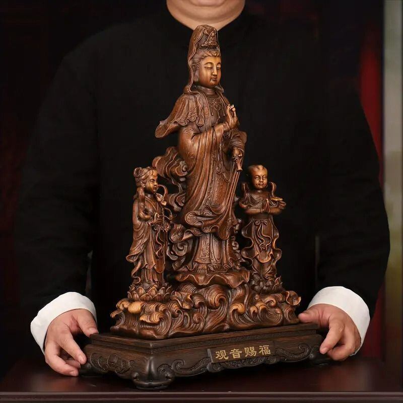 このオブジェは、伝統的な技術で細部まで美しく彫刻され、豪華なインテリアとしても高い評価を受けています。高級感あふれるデザインが、空間に気品を添え、特別な存在感を放ちます。この観音菩薩仏像をお部屋に飾ることで、風水的にも吉祥を呼び込み、心の安らぎと運気の向上を祈願することができるでしょう。