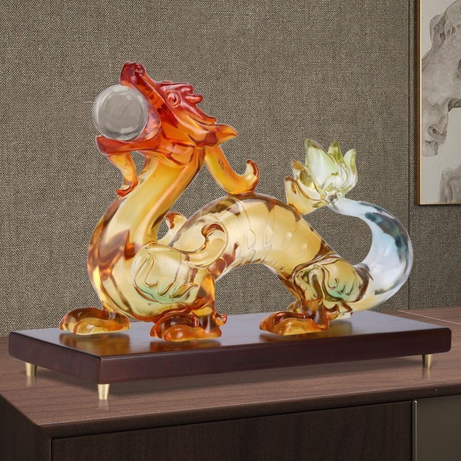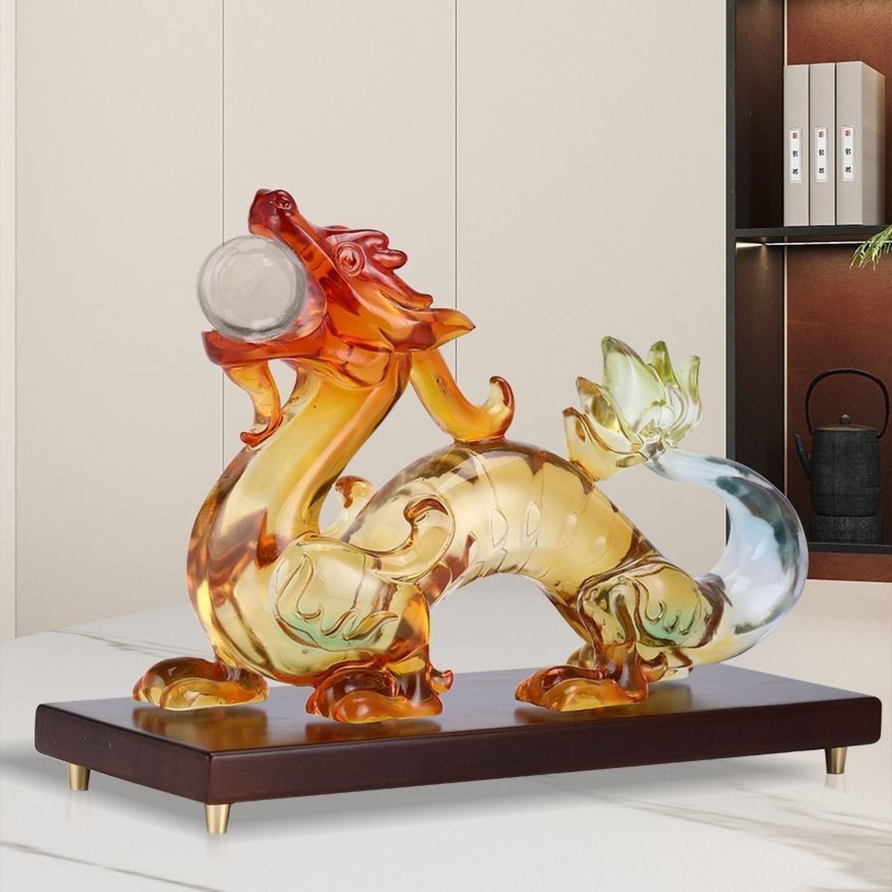 インテリアとしても目を引くこのドラゴンの置物は、どんな空間にも高級感と洗練をもたらします。リビングやオフィスに飾ることで、強力な守護とともに、運気を向上させるサポートをしてくれるでしょう。透明感と鮮やかな色彩が織りなす独特の美しさを、ぜひお手元に。