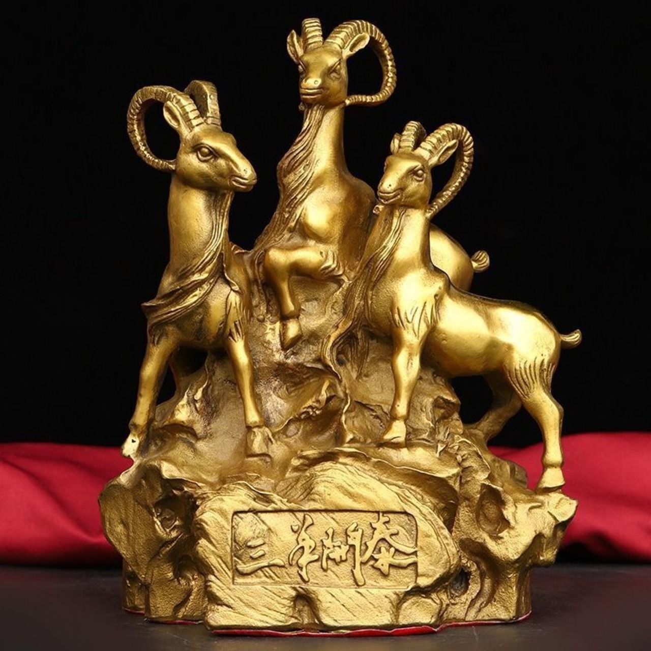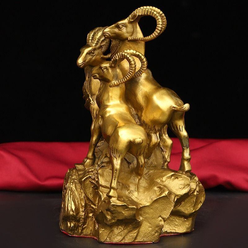 この3匹の山羊が共に崖の上を見据える姿は、団結やチームワークを象徴し、ビジネスや人間関係において力を発揮する存在として崇められています。風水の観点からも、山羊は目標達成や運気の向上をもたらすと信じられており、このオブジェは家族や職場の繁栄、そして個人の成長を後押しするかもしれません。