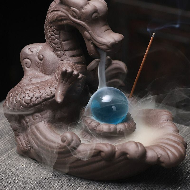 香炉として使用することで、煙が立ち上るたびにドラゴンの力強いエネルギーと青い玉の落ち着きのあるエネルギーが空間に広がり、心を落ち着けると同時に、運気を高める作用をもたらすかもしれません。スピリチュアルな側面だけでなく、インテリアとしても非常に魅力的で、どんなお部屋にも優雅で神秘的な存在感を与えてくれます。