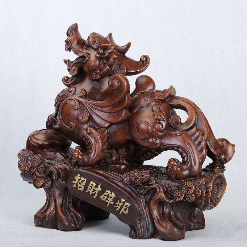 彫りの深さや細やかな造形が麒麟の威厳を引き立て、見る者に安心感と力を与えます。家庭の和やかな幸福を願う方や、ビジネスでの成功を目指す方にとって、特に好まれる置物です。仕事場に置けば、繁栄や成功を願う力が宿り、毎日のモチベーションを高めてくれるかもしれません。