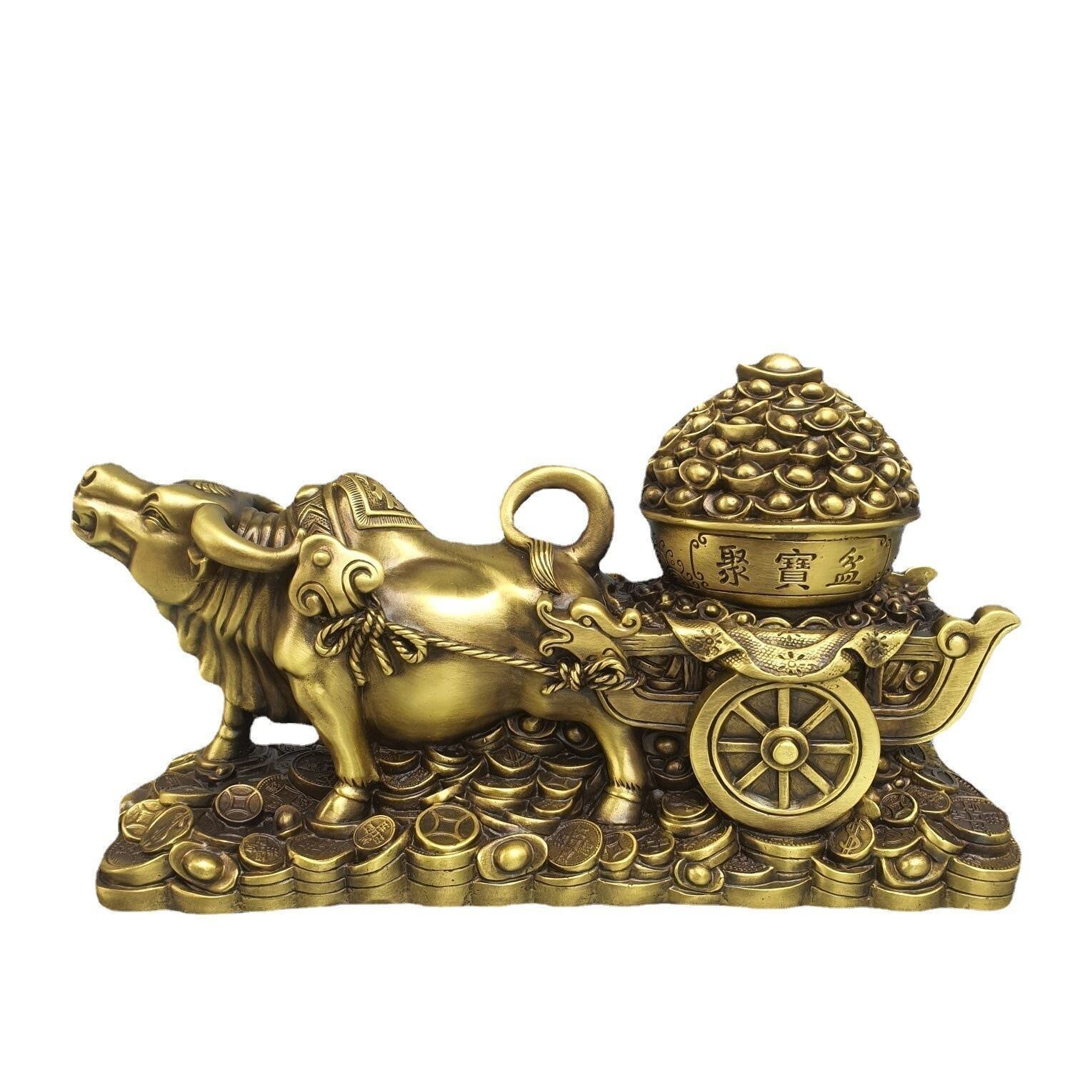 風水の観点では、牛は堅実さと安定を象徴し、金色は富と繁栄を表す色とされています。この牛車のオブジェを空間に取り入れることで、経済面やビジネスの運気を上昇させる手助けになると伝えられています。また、玄関やオフィスの一角に置くことで、訪れる人々に豊かなエネルギーをもたらし、場の雰囲気を和やかに保つとされます。