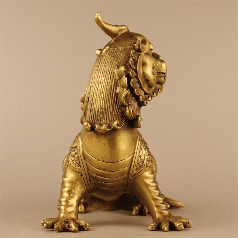 古代中国の伝説に登場する神獣、貔貅(ひきゅう)を模した美しい銅製の置物です。貔貅は、強い守護の力を持つとされ、特に財運や商売繁盛を象徴する神獣として広く信仰されています。角があり、龍のような姿をしたこの神獣は、悪霊を追い払う力を持ち、持ち主に幸運をもたらすと信じられています。
